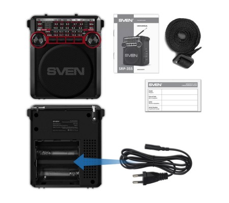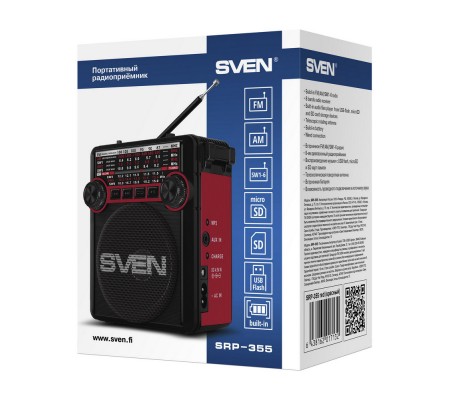 SVEN SRP-355 поддерживает сразу четыре типа питания! С ним можно быть на 100 процентов уверенным в том, что без музыки вы не останетесь. В комплекте идет кабель питания 220В — приемник можно просто включить в розетку и начать слушать — без всяких блоков питания и прочего. Но если вдруг БП на 4,5В есть под рукой — можно воспользоваться и им, соответствующий разъем имеется. При этом устройство может работать и автономно, благодаря встроенному аккумулятору емкостью 900 мА·ч. А если вдруг аккумулятор разрядится? Тоже ничего страшного, можно установить две батарейки типа D/UM и продолжать прослушивание.SVEN SRP-355 может принимать сигнал во всех восьми активно работающих диапазонах — от FM до AM и SW1-6, поворотная телескопическая антенна обеспечивает уверенный прием, потому без хоть какого-нибудь радио остаться будет сложно. Но если вдруг вы окажетесь где-нибудь в подвале или пещере, например, то и тут приемник не подведет. Во-первых, пригодится фонарик. А во-вторых, способность воспроизводить аудиофайлы с USB-накопителя или карты памяти microSD. Главное — не забыть заготовить подборку любимых треков заранее. А если забыли, можно подключить SRP-355 в качестве активной колонки к какому-нибудь другому гаджету, соответствующий разъем AUX тоже имеется.Весит радиоприемник всего лишь 600 г — это действительно портативный приемник. За звук отвечает крупный динамик диаметром 76 мм, обеспечивающий покрытие широкого частотного диапазона — от 150 Гц до 20 кГц. Громкость для такой малютки тоже отличная — SRP-355 оснащен усилителем мощностью 3 Вт. В общем, у разработчиков получилось универсальное устройство для любителей сочетания классики и современных технологий, которое при этом еще и стоит совсем немного — финский производитель по-прежнему стремится делать свои продукты максимально доступными широкому кругу пользователей. Проверить это очень просто — достаточно найти SVEN SRP-355 в каталогах магазинов, где он уже появился.