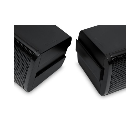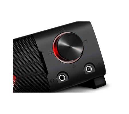 Акустическая система-трансформер с горизонтальным совместным (саундбар) или вертикальным раздельным размещением (классические колонки). Светодиодная подсветка динамиков и удобный регулятор громкости звука. На передней панели размещены разъемы для подключения гарнитуры.