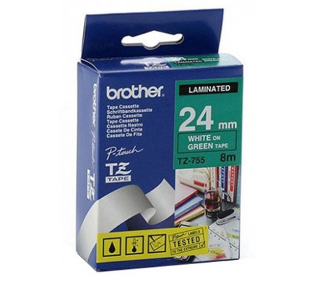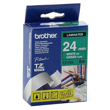 оригинальный, Brother TZE-755, белый на зеленом, 24 мм 8 м, Картридж ленточный, для принтера этикеток, 1 шт