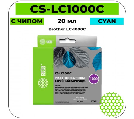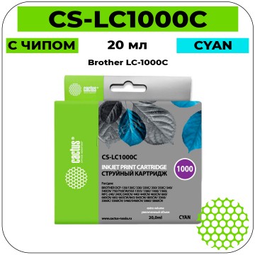 Cactus CS-LC1000C голубой струйный картридж используемый в МФУ всемирно известного бренда Cactus (Кактус) безусловно на 100% совместимый и предназначен для использования с принтерами Brother DCP 130C / 330С / MFC-240C / 5460CN .