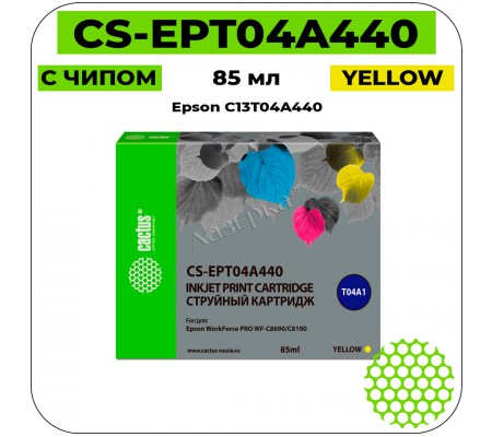 Картридж струйный Cactus CS-EPT04A440 желтый (85мл) для Epson WorkForce Pro WF-C8190, WF-C8690