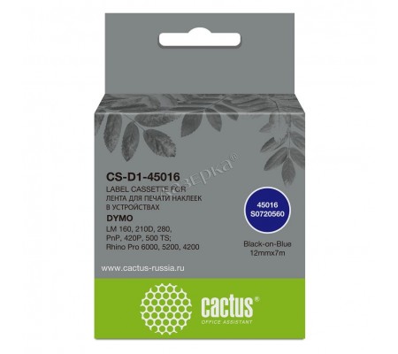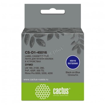 Картридж ленточный Cactus CS-D1-45016 совместимый [Dymo 45016] черный на синем 12мм 7м для принтера Dymo LM 160 | 210D | 280 | PnP | 420P | 500 TS; Rhino Pro 6000 | 5200 | 4200