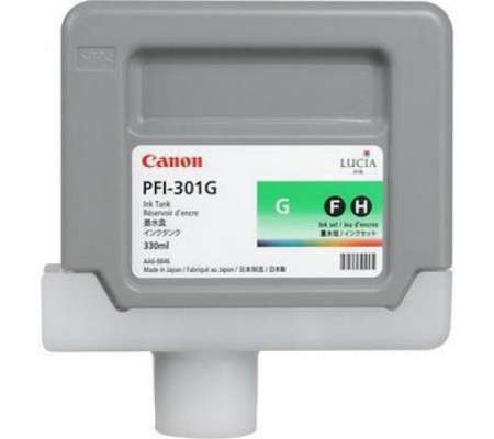 Canon PFI-301G зеленый струйный картридж для копировальной техники известной фирмы Canon без всяких сомнений оригинальный и предназначен для использования в принтерах Canon iPF8000 / iPF8000S / iPF8100 / iPF9000 / iPF9000S / iPF9100 .