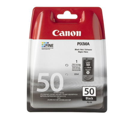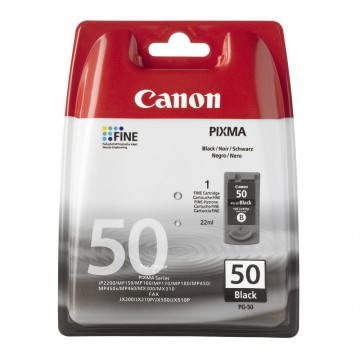 Canon PG-50 чёрный струйный картридж применяемый в принтерах широко известной компании Canon на 100% оригинальный и предназначен для использования в оргтехнике Canon Pixma MP150 / 160 / 170 / 180 / 450 / 460 // MX300 / 310 // Canon Fax-JX200 / JX500 // Canon Pixma iP220.