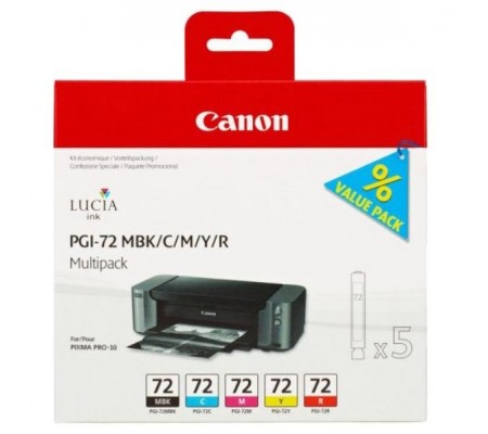 Canon PGI-72MBK/C/M/Y/R 5-и цветный струйный картридж используемый в МФУ известного производителя Canon на 100% гарантированно оригинальный и совместим с принтерами Canon PRO-10 / PRO-10S .