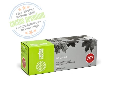 CS-C707Bk Premium черный лазерный картридж применяемый в принтерах производства Cactus (Кактус) гарантированно совместимый и предназначен для использования с принтерами Canon LBP 5000 / 5100.