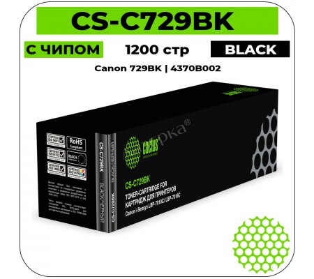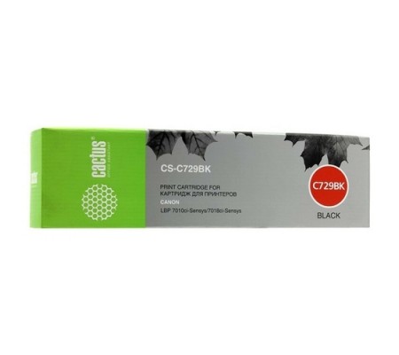Cactus CS-C729BK черный лазерный картридж для принтеров и МФУ всемирно известной фирмы Cactus (Кактус) вы можете не сомневаться совместимый и совместим с печатной техникой Canon i-SENSYS LBP-7010C / Canon LBP-7018C .