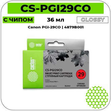 Cactus CS-PGI29CO прозрачный струйный картридж применяемый в МФУ бренда Cactus (Кактус) на 100% гарантированно совместимый и используется в принтерах Canon Pixma Pro-1 .