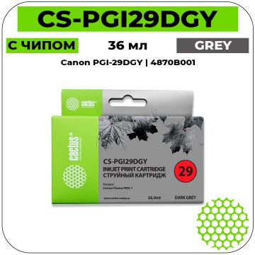 Cactus CS-PGI29DGY темно-серый струйный картридж для печатной техники известного производителя Cactus (Кактус) полностью совместимый и поэтому его можно применять в принтерах Canon Pixma Pro-1 .