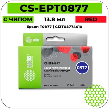 Cactus CS-EPT0877 красный струйный картридж rand:для принтеров компании Cactus (Кактус) полностью совместимый и предназначен для использования с принтерами Epson Stylus Photo R1900 .