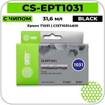Cactus CS-EPT1031 черный струйный картридж для МФУ компании Cactus (Кактус) гарантированно совместимый и применим в принтерах Epson Stylus Office T40 / T40w / TX510 / TX510fn / TX600 / TX600fw / TX550 / X550w .