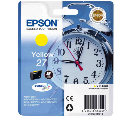 Epson C13T27044020 Жёлтый струйный картридж для принтеров и МФУ производства Epson на 100% гарантированно оригинальный и из-за этого может с успехом приеняться в принтерах Epson WorkForce WF-3620DWF / WF-3640DTWF / WF-7110DTW / WF-7610DWF / WF7620DTWF.