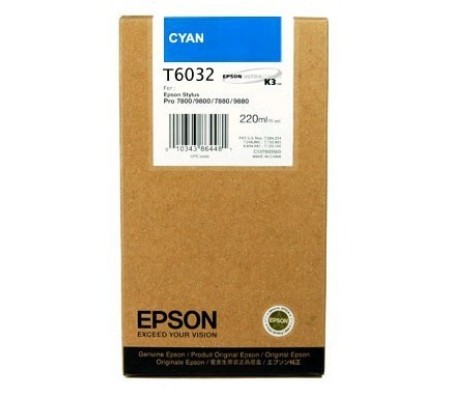 Epson C13T603200 голубой струйный картридж используемый в принтерах широко известной компании Epson на 100% оригинальный и совместим с принтерами и оргтехникой Epson Pro 7800 / Pro 7880 / Pro 9800 / Pro 9880 .