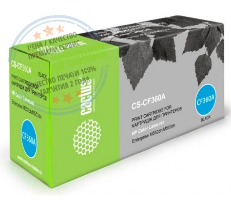 CS-CF360A Premium черный лазерный картридж от оргтехники известного производителя Cactus (Кактус) гарантированно совместимый и предназначен для использования с принтерами HP Color LaserJet Enterprise M552dn / M553dn / M553n / M553x.