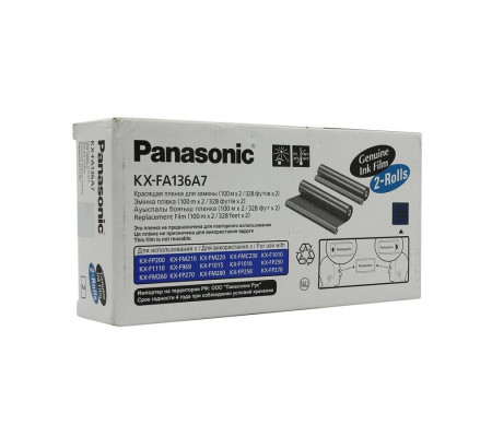 Panasonic KX-FA136A7 чёрный факсовая плёнка используемый в МФУ известного производителя Panasonic гарантированно оригинальный и совместим с принтерами и оргтехникой Panasonic KX-F969 / 1010 / 1015 / 1110 / 1810 / FP101 / 105 / 200 / FM131 / 210 / 230.