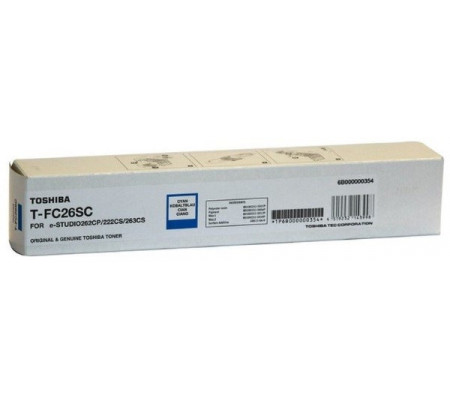 Toshiba T-FC26SC голубой лазерный картридж для принтеров и МФУ производителя оргтехники Toshiba на 100% оригинальный и совместим с принтерами и оргтехникой Toshiba e-Studio 222cs / e-Studio 262cp / e-Studio 263cs .