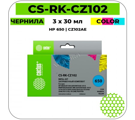 Чернила Cactus CS-RK-CZ102 совместимые [HP 650 | CZ102AE] цветной 90 мл