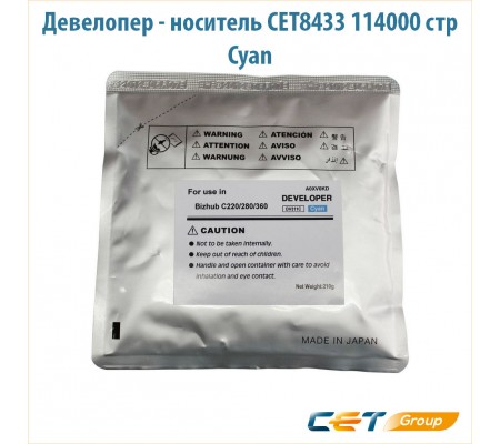 Девелопер - носитель CET8433 совместимый [Konica Minolta A0XV0KD] 210 гр | пакет голубой для Konica Minolta C360 | C280 | C220 || Для использования в блоках проявки A0XV0KD. Производится на том же заводе, что и OEM.