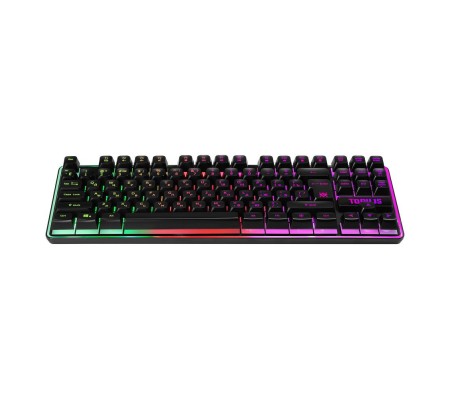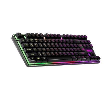 Радужная подсветка Для смены режима подсветки используйте комбинацию клавиш "FN+?" Подсветка символов и клавиш Управление мультимедийными программами Активируются клавишей FN Аппаратная блокировка клавиши WIN во время игры Используйте комбинацию клавиш "FN+WIN" Возможность выключения подсветки Используйте кнопку "Led ?" для включения и выключения подсветки Регулируемая яркость подсветки Меняйте яркость подсветки с помощью комбинации клавиш FN + PgUp/PgDn Угол наклона клавиатуры регулируется с помощью выдвижных ножек Легкая установка. Для работы не нужны драйверы