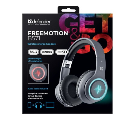 Периферия в Лазерка.нет - Defender Беспроводная гарнитура FreeMotion B571 серый, LED, Bluetooth