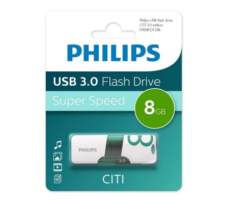 USB Flash накопитель Philips CITI3.0 – это компактное и стильное устройство для хранения и переноса данных, которое сочетает в себе высокую скорость передачи, надёжность и современный дизайн. С объёмом памяти 8 Гб он станет удобным решением для работы, учёбы или повседневного использования. Благодаря интерфейсу USB 3.0 файлы копируются быстро и без задержек, экономя ваше время. Корпус накопителя выполнен из прочного пластика, который обеспечивает защиту от механических повреждений и лёгкий вес. Удобный выдвижной разъём исключает необходимость в колпачке, который можно потерять. Просто нажмите на кнопку – и коннектор готов к использованию. Такой механизм делает устройство ещё более практичным и долговечным. Philips CITI3.0 доступен в двух цветовых вариантах – белом и зелёном. Лаконичный дизайн и гладкая поверхность делают его не только функциональным, но и стильным аксессуаром. Накопитель легко поместится в карман, сумку или даже в небольшой кошелёк, а его компактные размеры не займут много места. Благодаря поддержке USB 3.0 скорость передачи данных значительно выше, чем у стандартных USB 2.0. Это означает, что вы сможете загружать фотографии, музыку, документы и видеофайлы за считанные секунды. Совместимость с предыдущими версиями USB позволяет использовать накопитель даже на старых компьютерах и ноутбуках без потери функциональности.